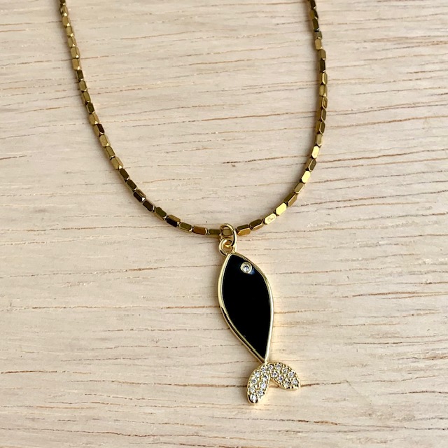 COLAR HEMATITA PEIXE ESMALTADO